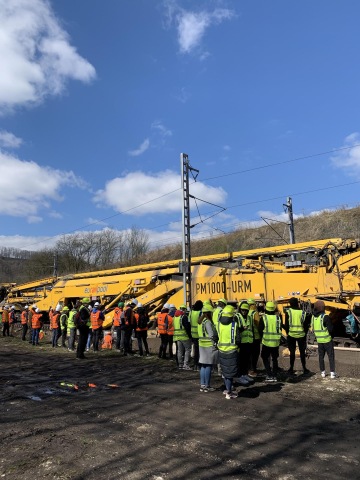 Prohlédli si nejen stavbu, ale především měli možnost vidět při práci unikátní Sanační linku PM 1000 – URM od firmy Swietelsky, která pracuje výhradně z kolejí bez potřeby zásahu do okolí a nastavuje nová měřítka pro sanaci železničního spodku technologií bez snášení kolejového roštu. Největší výhodou stroje je významně optimalizované opětovné použití stávajícího materiálu.