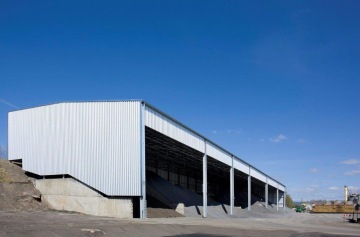 V rámci snižování energetické náročnosti podnikatelského sektoru realizovala společnost EUROVIA CS, a.s. výstavbu zastřešení skládek kameniva v areálu obalovny Dalovice.