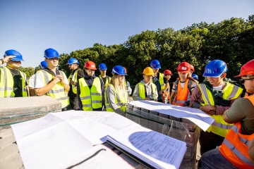 Kolegové z EUROVIA CS a Stavby mostů provedli 120 studentů Technického lycea a čtvrtého ročníku oboru Stavebnictví na Střední průmyslové škole stavební Hradec Králové stavbou jižního obchvatu II/298 kolem Opočna.