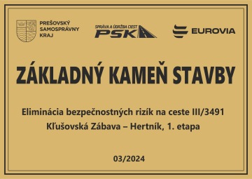 Názov stavby: Eliminácia bezpečnostných rizík na ceste III/3491Kľušovská Zábava – Hertník, 1. etapa