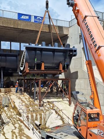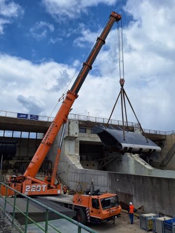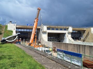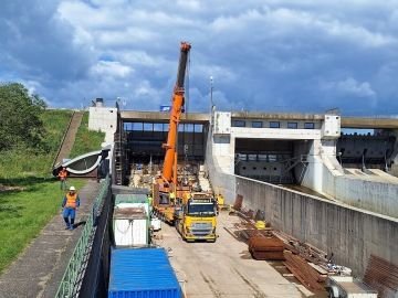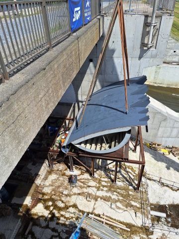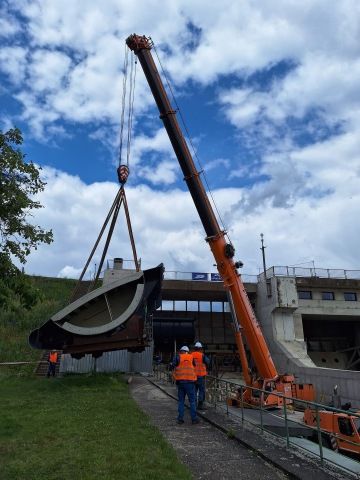 V rámci rekonstrukce bezpečnostního přelivu na vodním díle Nechranice probíhá za pomocí jeřábu osazení druhé poloviny klapkového uzávěru. Stavební práce zajišťují kolegové z SMP Vodohospodářské stavby ve sdružení se společností Strojírny Podzimek.