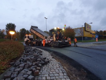 Kolegové z libereckého závodu EUROVIA CS využili uzavření obchodů během státního svátku 28. října k bleskové opravě okružní křižovatky na vjezdu k nákupnímu centru Géčko v Liberci.
