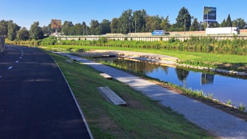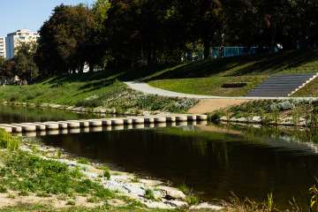 Tento volnočasový projekt proměnil pravý břeh Vltavy v moderní relaxační zónu. Stavba, která byla dokončena v loňském roce, zahrnovala vytvoření dvou nových ostrovů se zpevněnými břehy a bohatou výsadbou, vybudování nových přístupů, propojovacích schodišť a pěšin pro chodce i instalaci mobiliáře z dubových hranolů. Součástí projektu bylo rovněž rozšíření původní cyklostezky, která získala nový povrch.