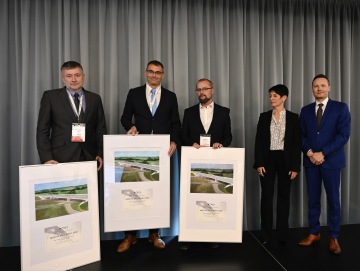 Kolegové z EUROVIA CZ si z konference Sympozium MOSTY v Brně odnesli ocenění Mostní dílo roku 2022 za most na D35 přes železniční stanici Uhersko v km 28,773 až 28,960.