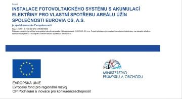 Projekt je finančně podpořen dotací z Operačního programu Podnikání a inovace pro konkurenceschopnost, Úspory energie III. výzva – aktivita: Fotovoltaické systémy s/bez akumulace pro vlastní spotřebu, r.č. projektu CZ.01.3.10/0.0/0.0/19_316/0019953.