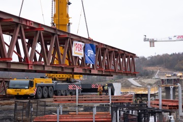 V polovině listopadu byla zahájena montáž nosníků mostní skruže přes železniční trať Žatec – Chomutov. Jde o součást prací na novém obchvatu a mostu v Žiželicích u Žatce, které mají ve sdružení na starosti kolegové z EUROVIA CZ a Staveb mostů.