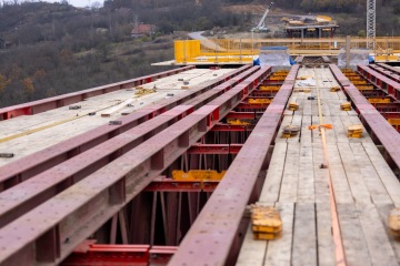 Betonová konstrukce mostovky bude částečně realizována na pevné skruži a částečně metodou letmé betonáže. Po dobu provádění montáže a demontáže nosníků nad železniční tratí bude tato trať ve výluce.
